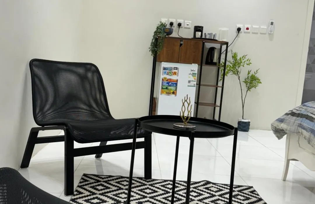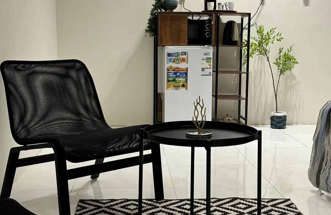 This apartment provides a microwave oven and a fridge for those who love cooking.